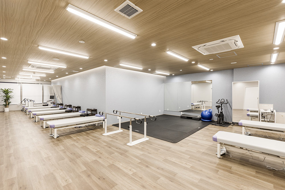 リハビリルームは100平米と広く、最新設備を用意しています。