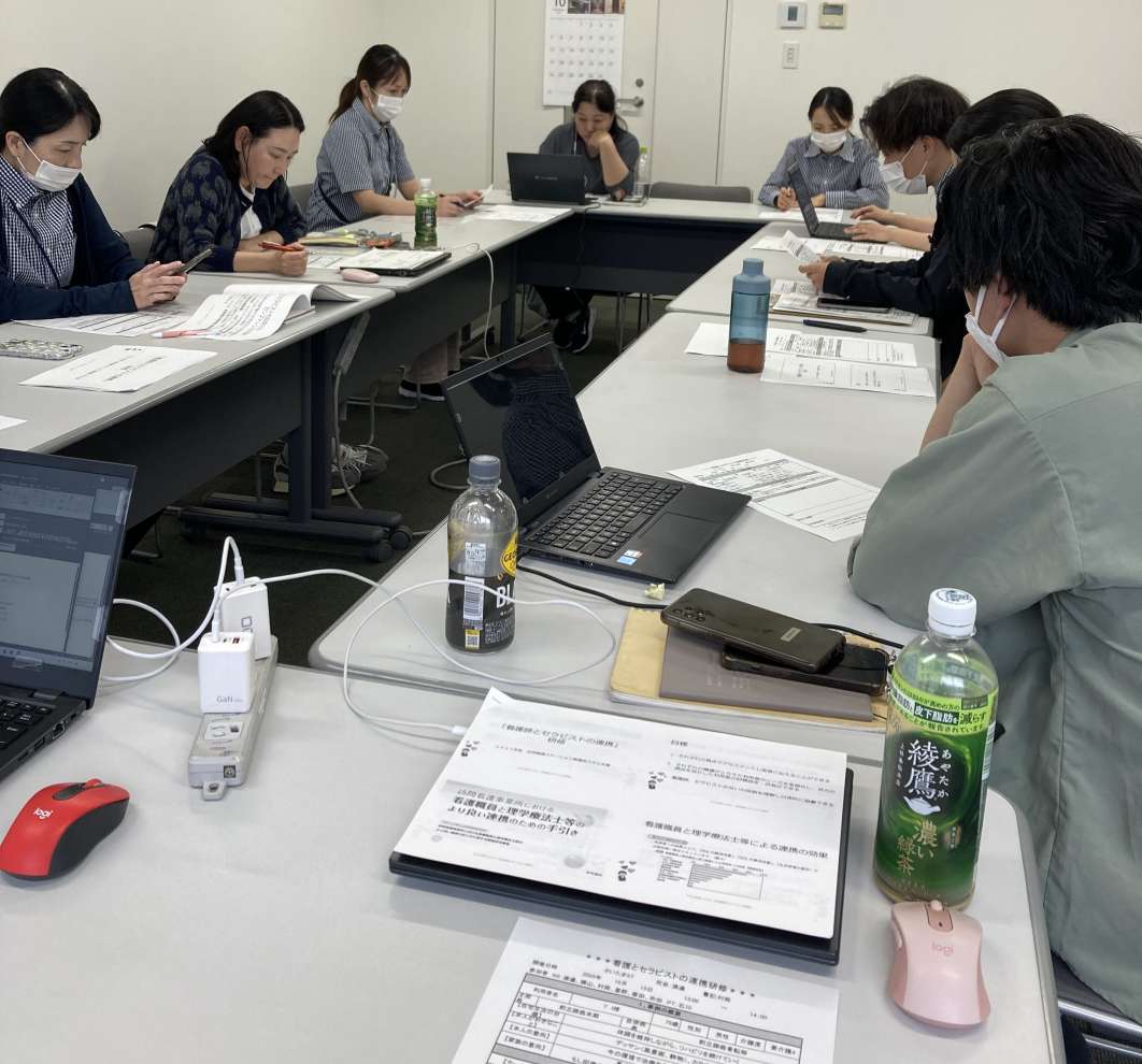ステーションでのカンファレンスや看護師とセラピストの連携について考える研修など、連携を深めてご利用者様への質の高いサービスに繋げる取り組みを継続的に行っています。
