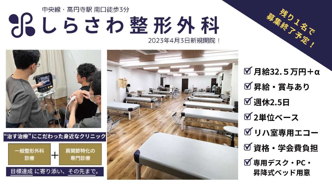 ☆肩関節特化 ☆リハビリ室専用エコーあり ☆術後リハビリ経験可能 ☆駅近徒歩3分 ☆未経験者歓迎 ☆昇給賞与 ☆肩関節特化 ☆リハビリ室専用エコーあり ☆術後リハビリ経験可能…