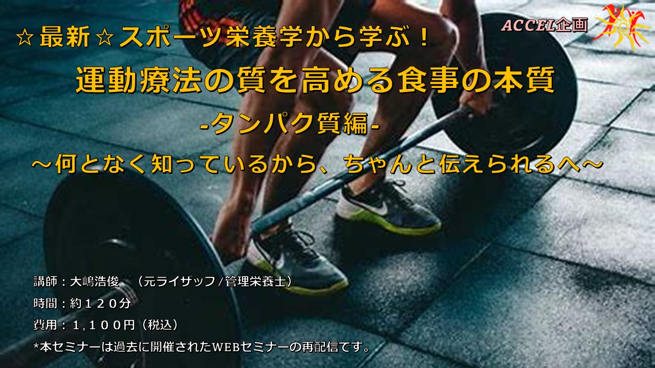 ☆動画☆スポーツ栄養学から学ぶ!運動療法の質を高める食事の本質~タンパク質編~ ☆動画☆スポーツ栄養学から学ぶ!運動療法の質を高める食事の…