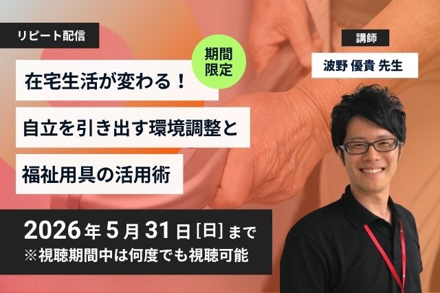 リピート配信 在宅生活が変わる!自立を引き出す環境調整と福祉用具の活用術(122分)(2026年5月31日まで視聴可能) リピート配信 在宅生活が変わる!自立を引き出す環境調整と福…