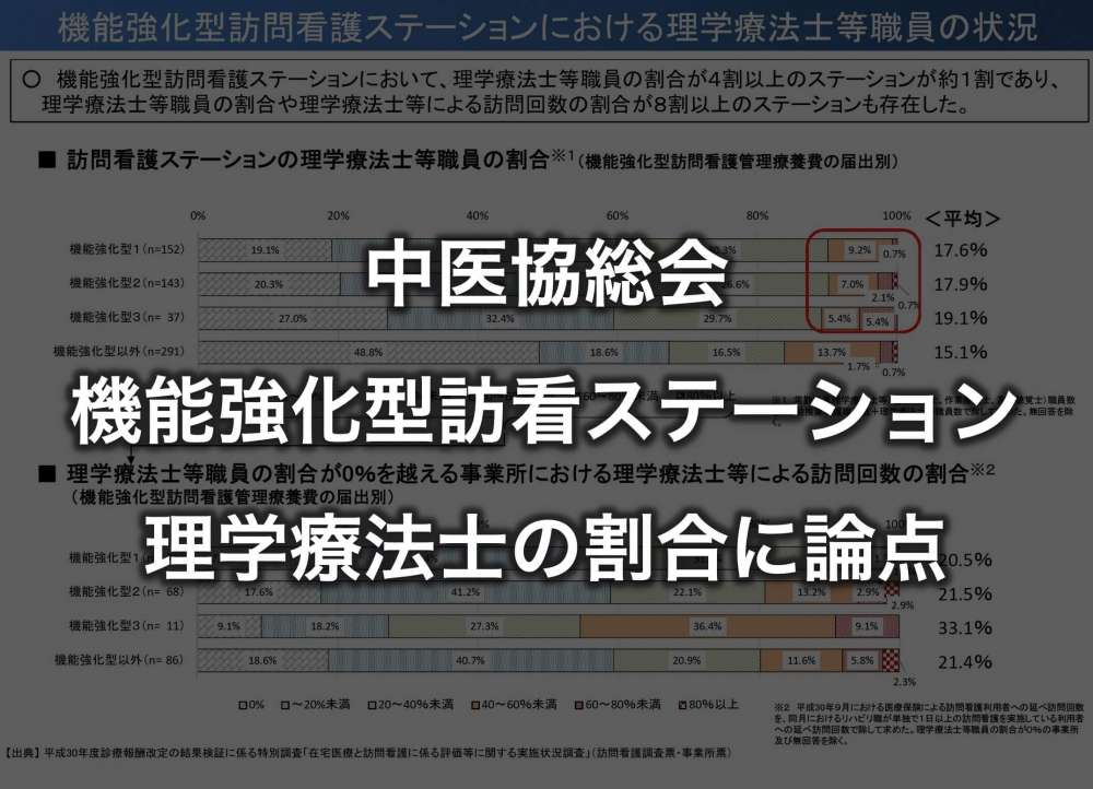 機能強化型訪問看護ステーション 理学療法士等の割合に論点|中医協総会