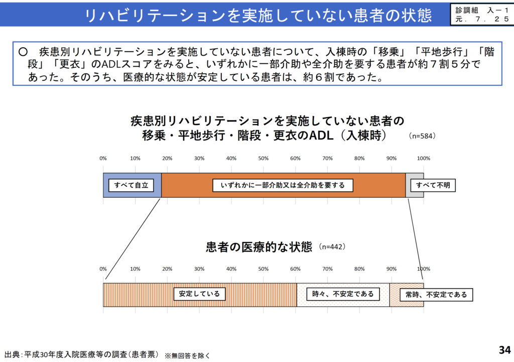 2. 地域包括ケア病棟における疾患別リハビリテーションの提供について、患者の入棟時に測定したADLスコアの結果等を参考にリハビリテーションの必要性を判断することを要件とする。