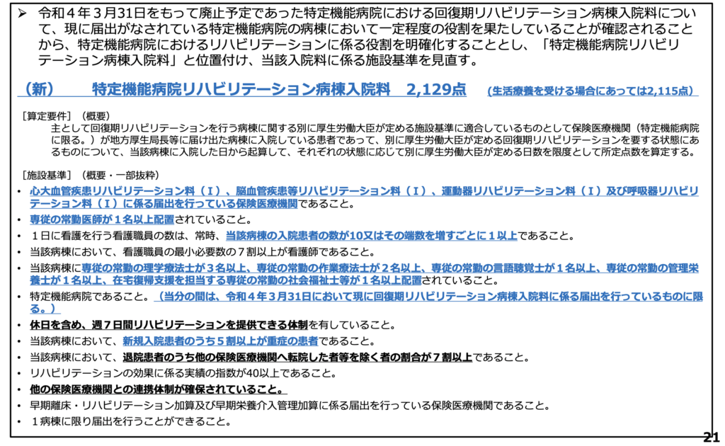 (新)特定機能病院リハビリテーション病棟入院料2,129点
