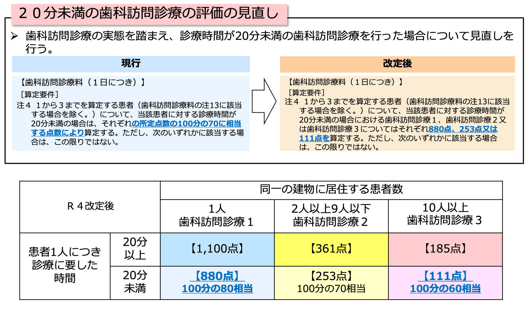 質の高い在宅歯科医療の提供を推進する観点から、歯科訪問診療や医療機関の実態を踏まえた見直しを行う。(詳細)