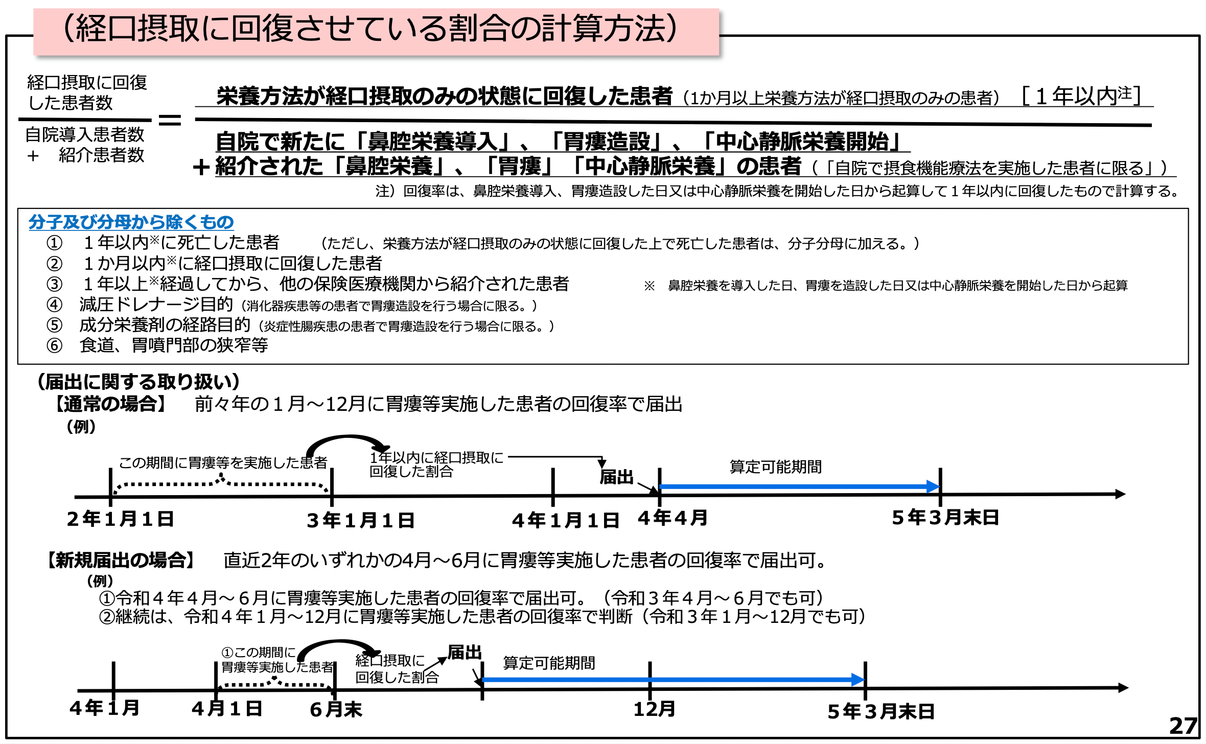 (答) 1か月以上栄養方法が経口摂取のみである患者を指す。