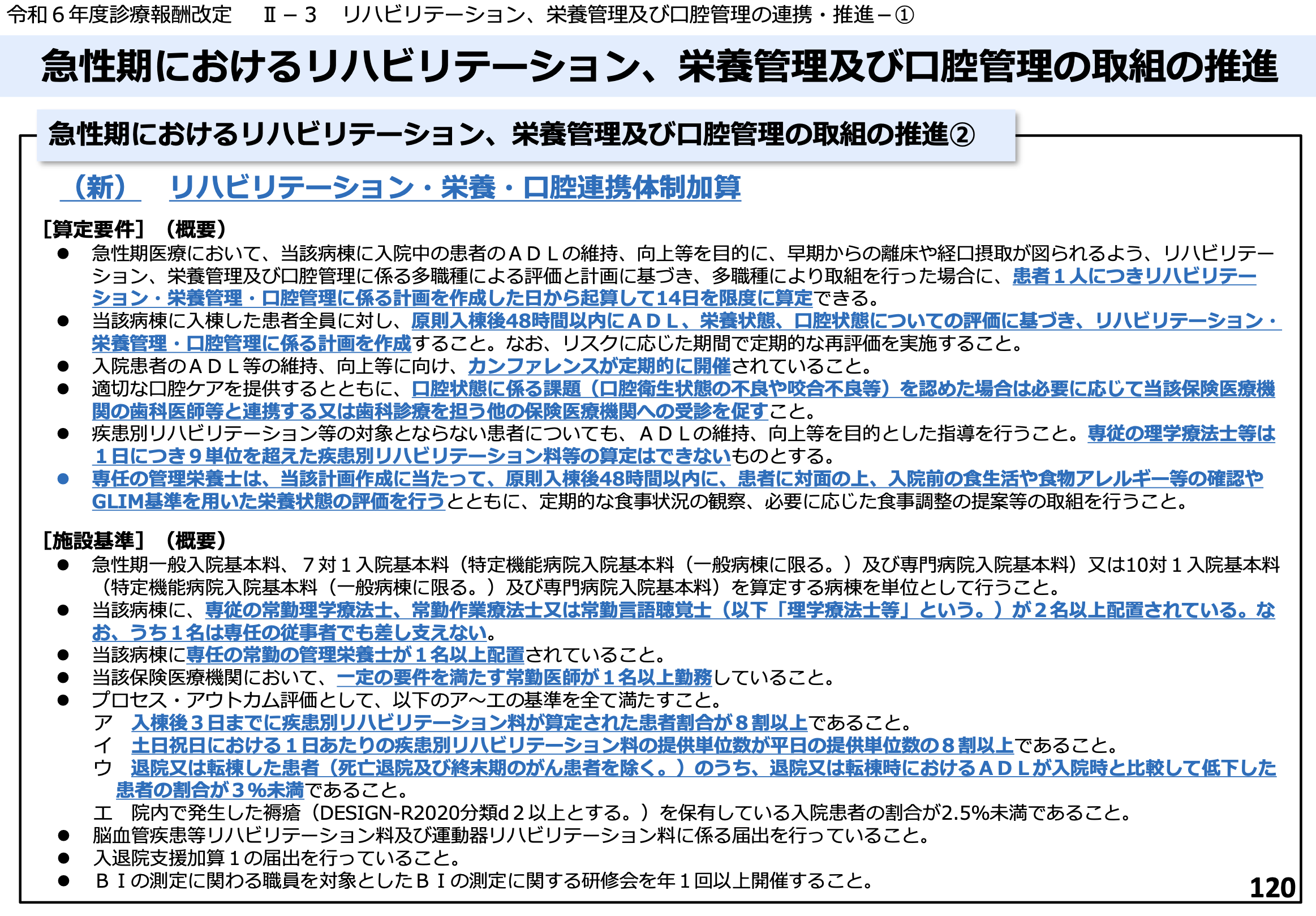 カテゴリ:リハビリテーション・栄養・口腔連携体制加算、リハビリテーション・栄養・口腔連携加算、地域包括医療病棟入院料