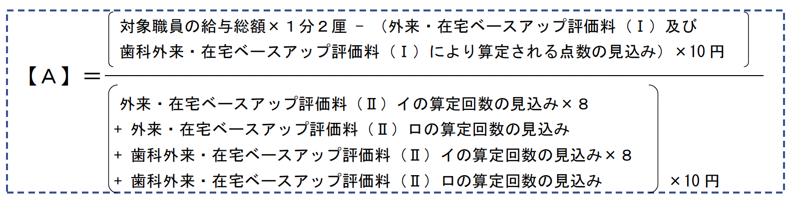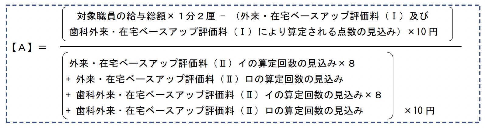 (4)外来・在宅ベースアップ評価料(Ⅰ)及び歯科外来・在宅ベースアップ評価料(Ⅰ)により算定される点数の見込みの10倍の数が、対象職員の給与総額の2分3厘未満であること。