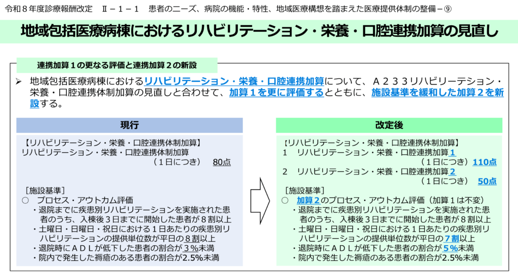・地域包括医療病棟における、リハビリテーション・栄養・口腔連携加算の見直し