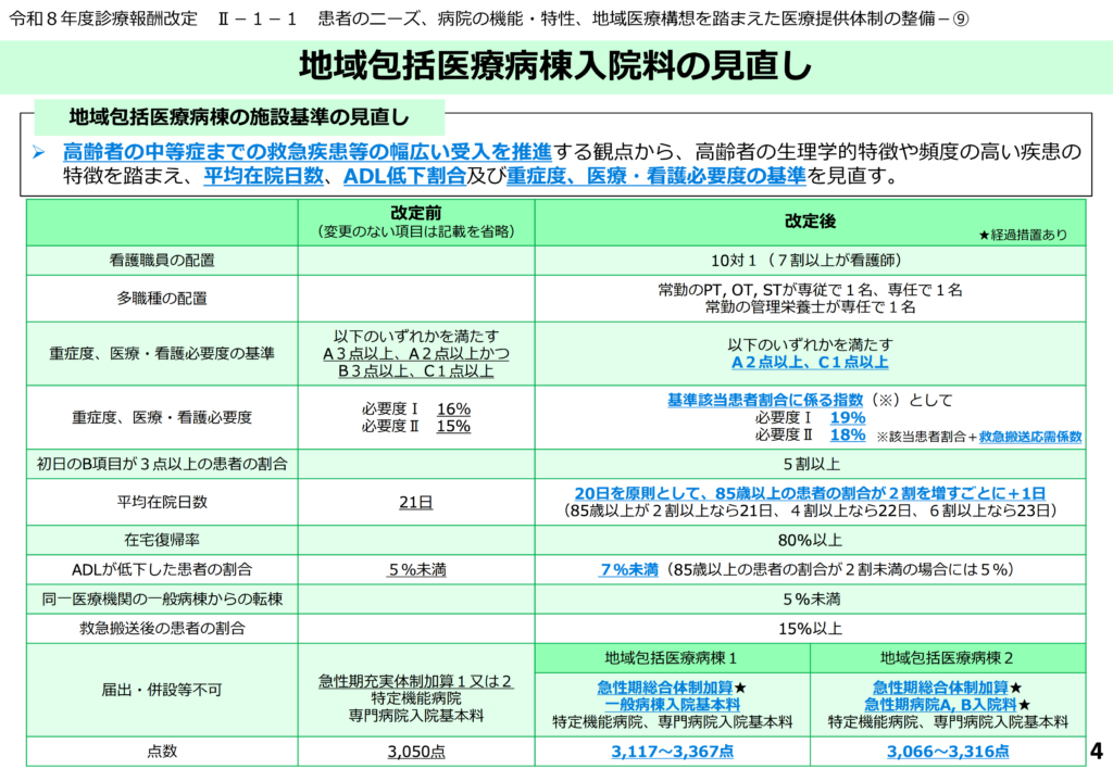 (2) 地域包括医療病棟入院料は、当該病棟に入院している患者について、入院の経緯、治療内容及び当該患者の状態に応じて、原則として、入院時に該当する区分の所定点数を算定する。なお、緊急入院の患者とは、予定された入院以外の患者をいう。