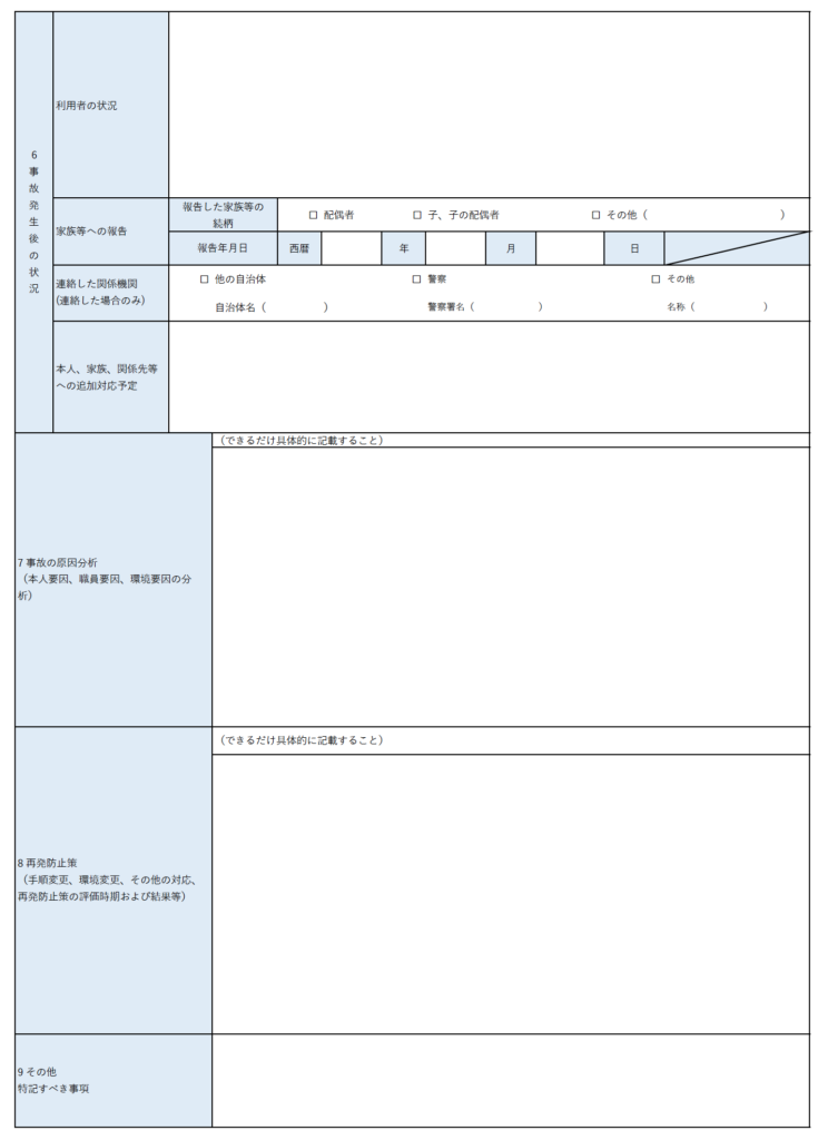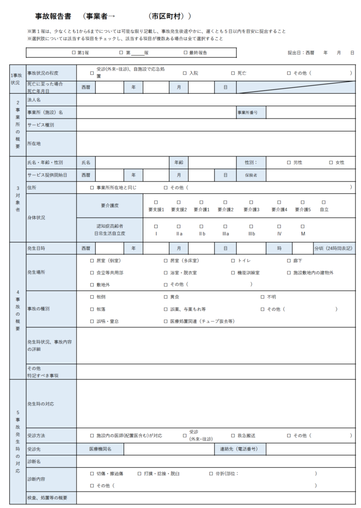 事故報告書の様式として活用ください。
