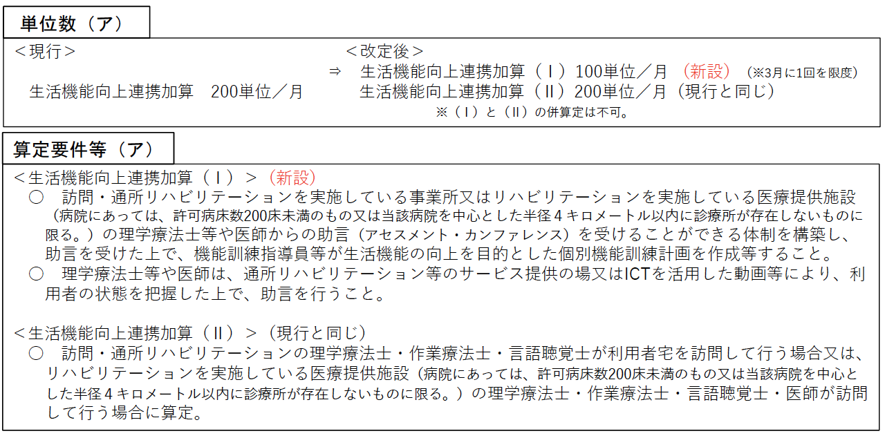 (1)生活機能向上連携加算(I)100単位 (新設)