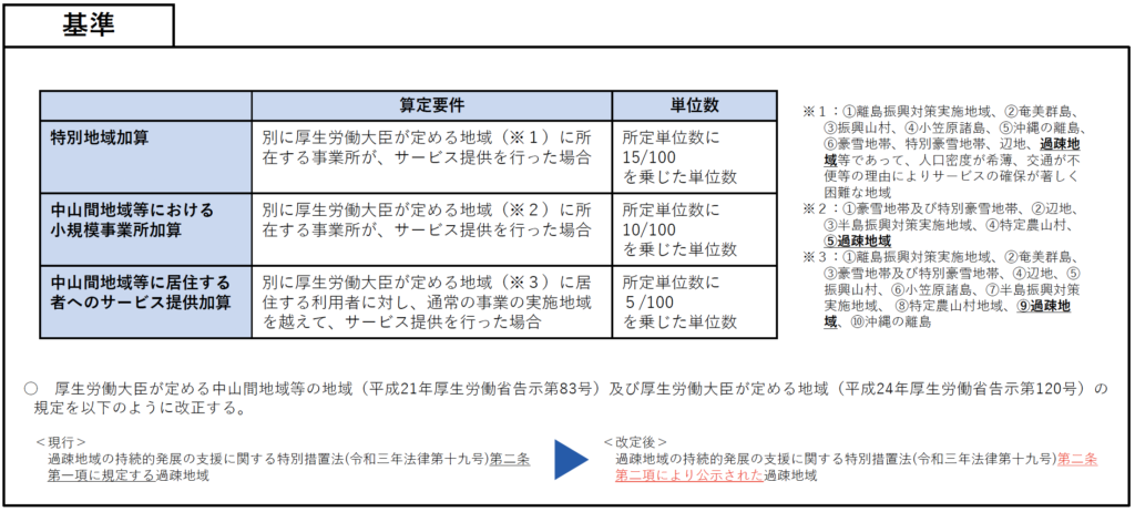 特別地域加算、中山間地域等の小規模事業所加算及び中山間地域に居住する者へのサービス提供加算の対象地域の明確化