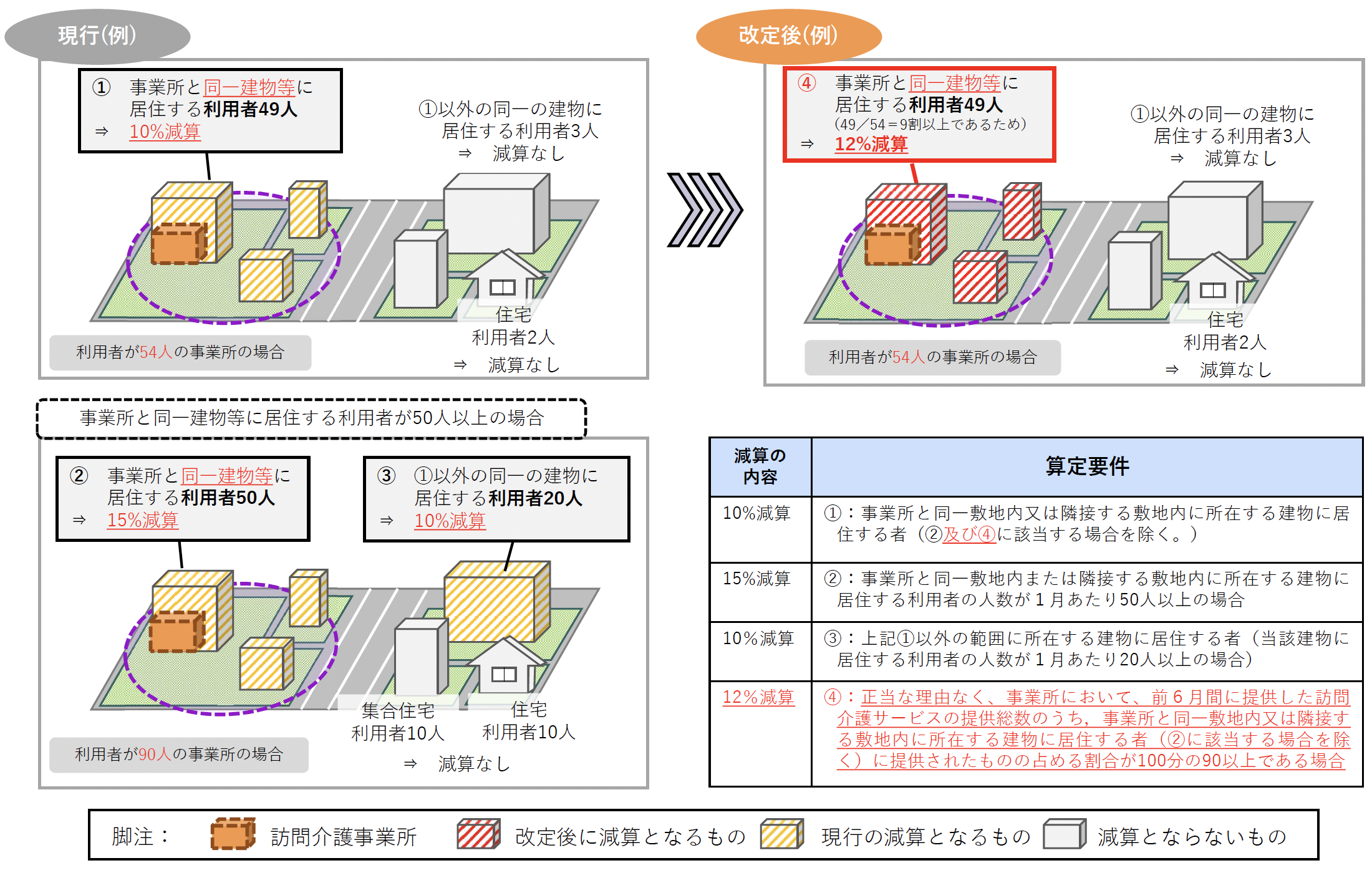 - 訪問介護における同一建物等居住者にサービス提供する場合の報酬の見直し