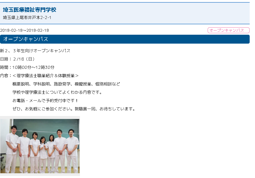 養成校情報のひとつとして、イベント情報を掲載することができます。