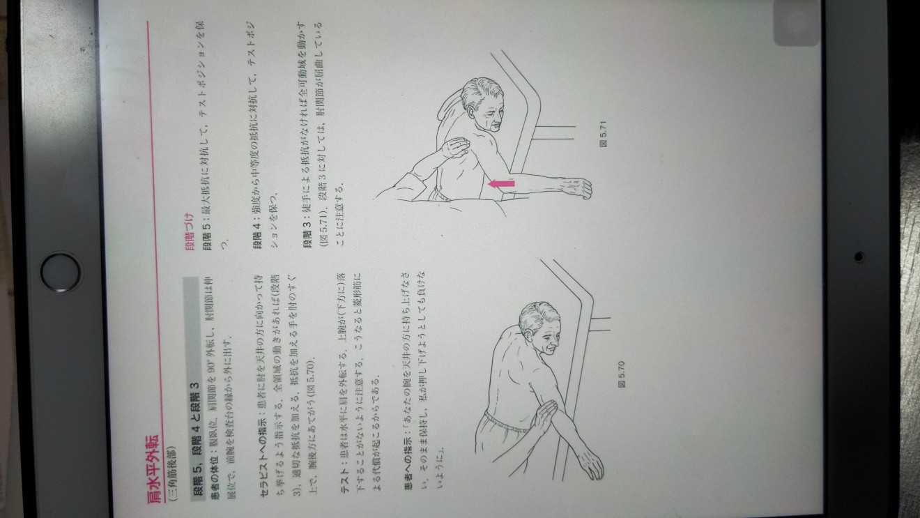 当方、第7版で教わっていたおっちゃんです。当時は、三頭筋長頭による代償を防ぐという理由から4,5も肘屈曲位でした。日進月歩ですね・・・貴重な機会を提供していただきありがとうございます。