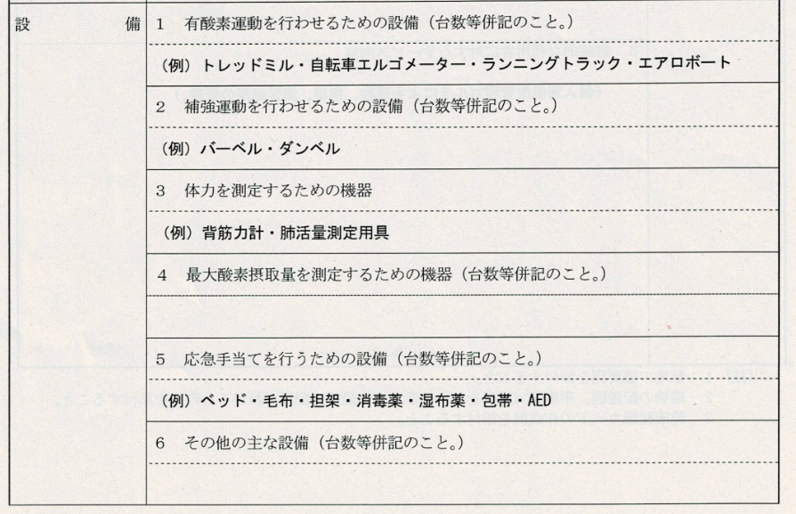 ハッキリとした基準については分かりませんが、健康運動指導士養成講習会に参加していた際に、医療機関併設の健康増進施設(医療法42条の施設とは異なりますが)を開設するため、勤務するクリニックの業務命令で受講していたPTがいらっしゃいましたので、健康運動指導士や健康運動実践指導者などの資格が必要になるのではないでしょうか?