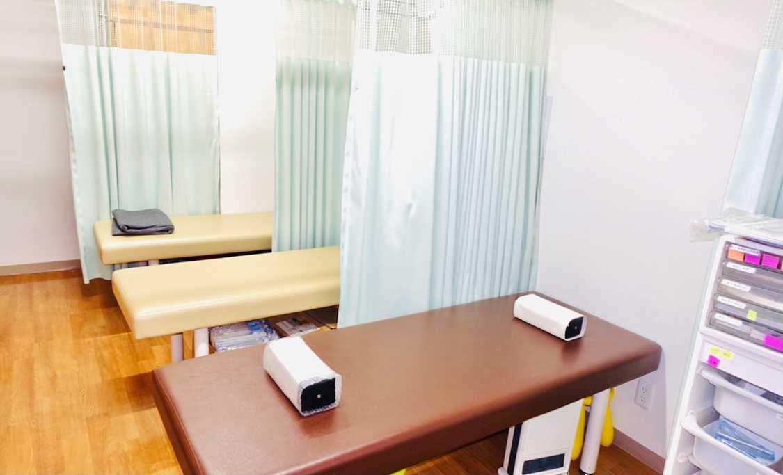 患者様に気持ちよく、機能回復や痛みの軽減のためのリハビリを行なって頂けるよう、明るく広々としたリハビリテーション施設が完備されています。一緒に患者さんを笑顔にしてきましょう!