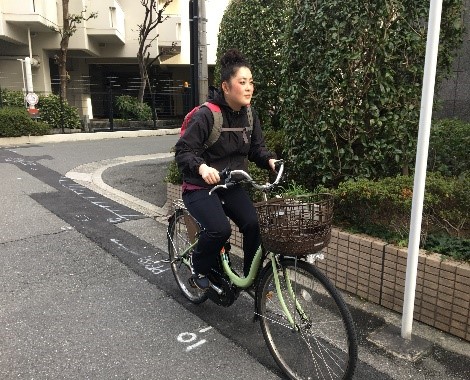 訪問は電動自転車、一部遠方は原付バイクと車を使用します。