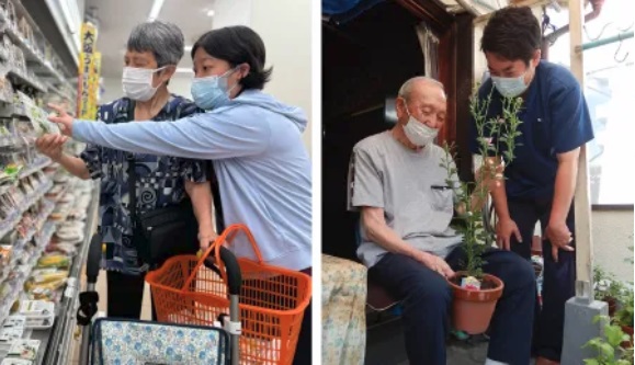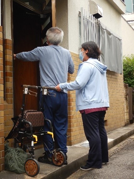 【訓練の風景②】趣味活動の再開、屋外での歩行練習、近隣スーパー等での買い物練習などにより活動範囲の拡大を図ります。