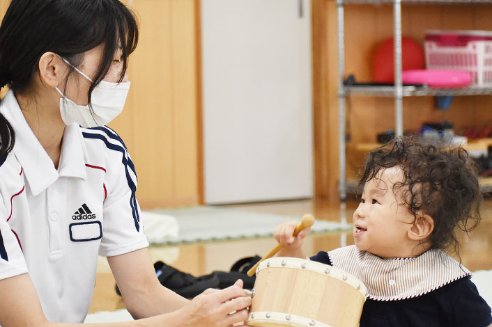 児童発達支援 保育士や看護師と協働して、お子さまの感覚や運動経験に対して、保育活動におけるさまざまな活動の支援を行います。
