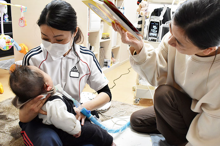 訪問リハビリテーション NICUを退院して医療的ケアが必要な赤ちゃんや、通院が困難な重症心身障害のある方々に対して、ご自宅に訪問して理学療法を行います。