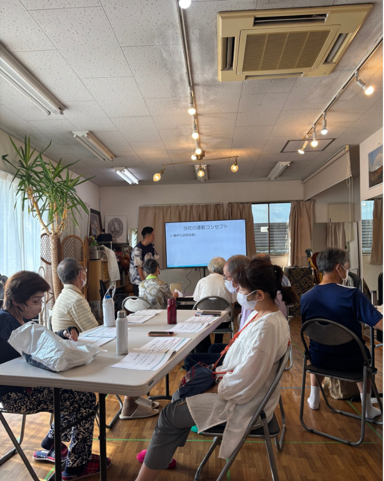 デイサービスでの業務だけではなく、地域貢献活動の一環として、弊社が主体となった地域住民向けの介護教室や、包括支援センターからの依頼を受けて体操教室開催など、幅広い活動を行っております。