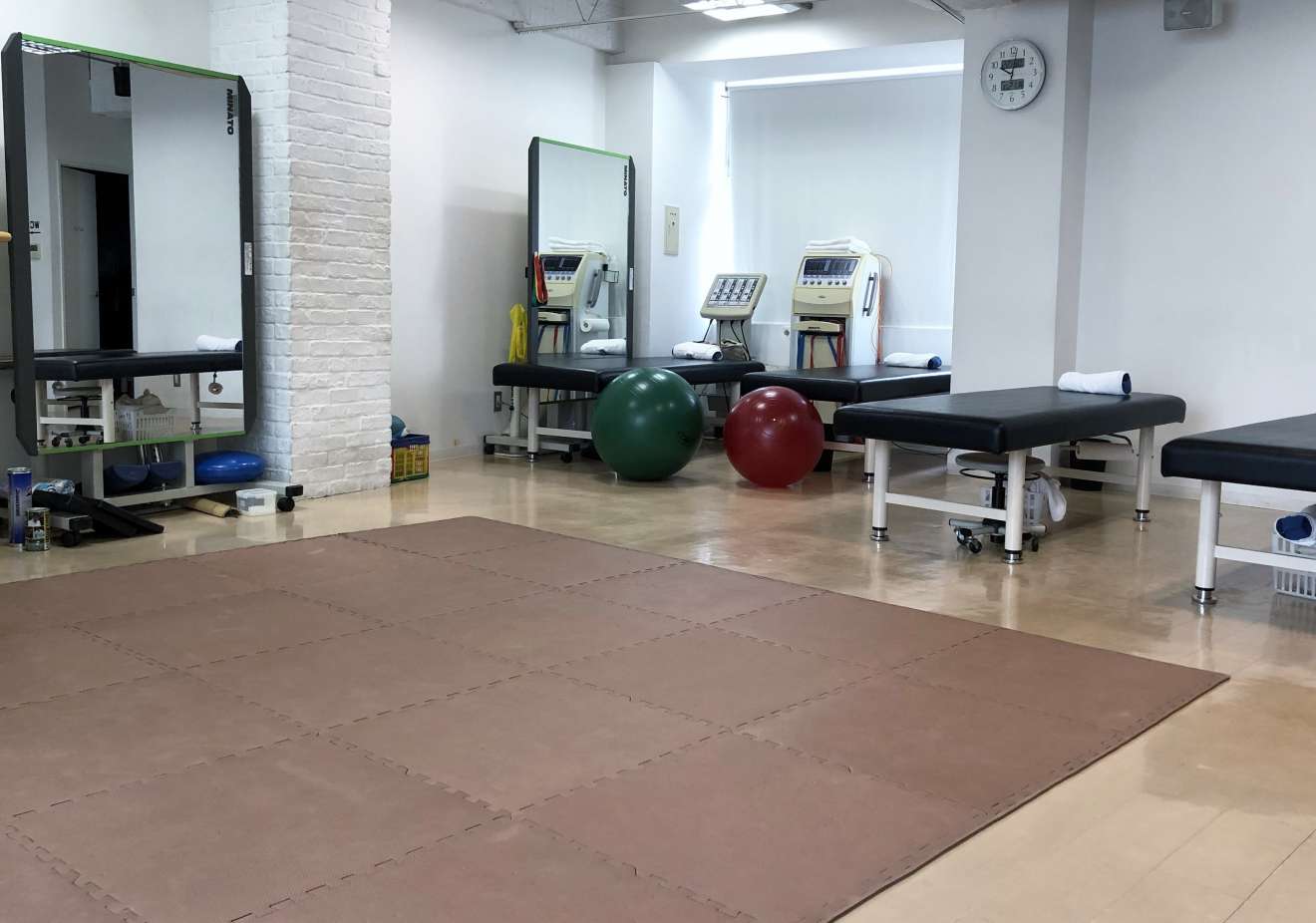 運動器リハビリ施設基準のⅡを取得しており、常に理学療法士3名の体制でリハビリを行っています。また、スポーツジムを併設しており、こちらではトレーナーが、アスリートのパフォーマンス向上やアスレティックトレーニングを行っています。整形外科疾患、スポーツ傷害は、確実な病態を把握してはじめて、リハビリ、トレーニングの方向性が定まり、正しい結果を出すことができるため、定期的に医師、理学療法士、トレーナー全員でミーティングを行っています。一般的な整形外科疾患やスポーツ外傷など、様々な症例を経験することができます。