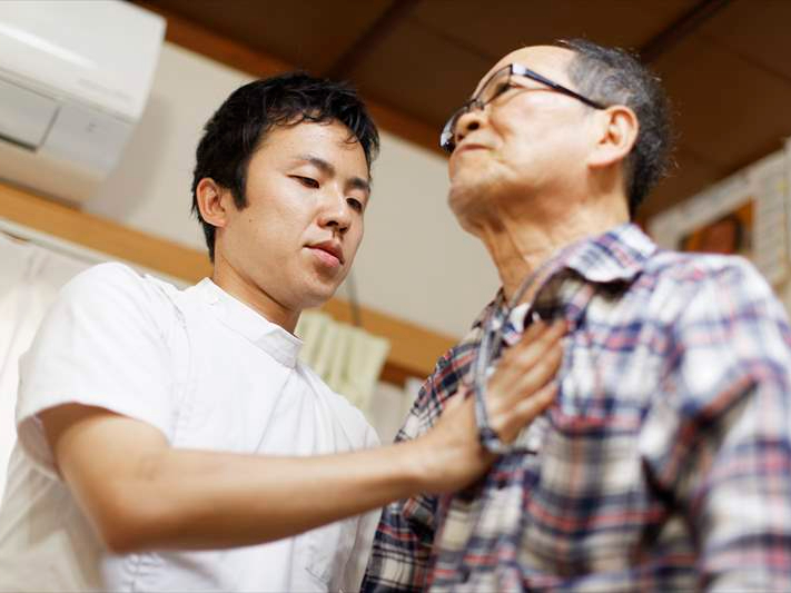在宅でリハビリを行い、ご利用者の機能維持向上・生活活動動作支援を目指します。看護師やケアマネジャーなど他職種との連携も行います。