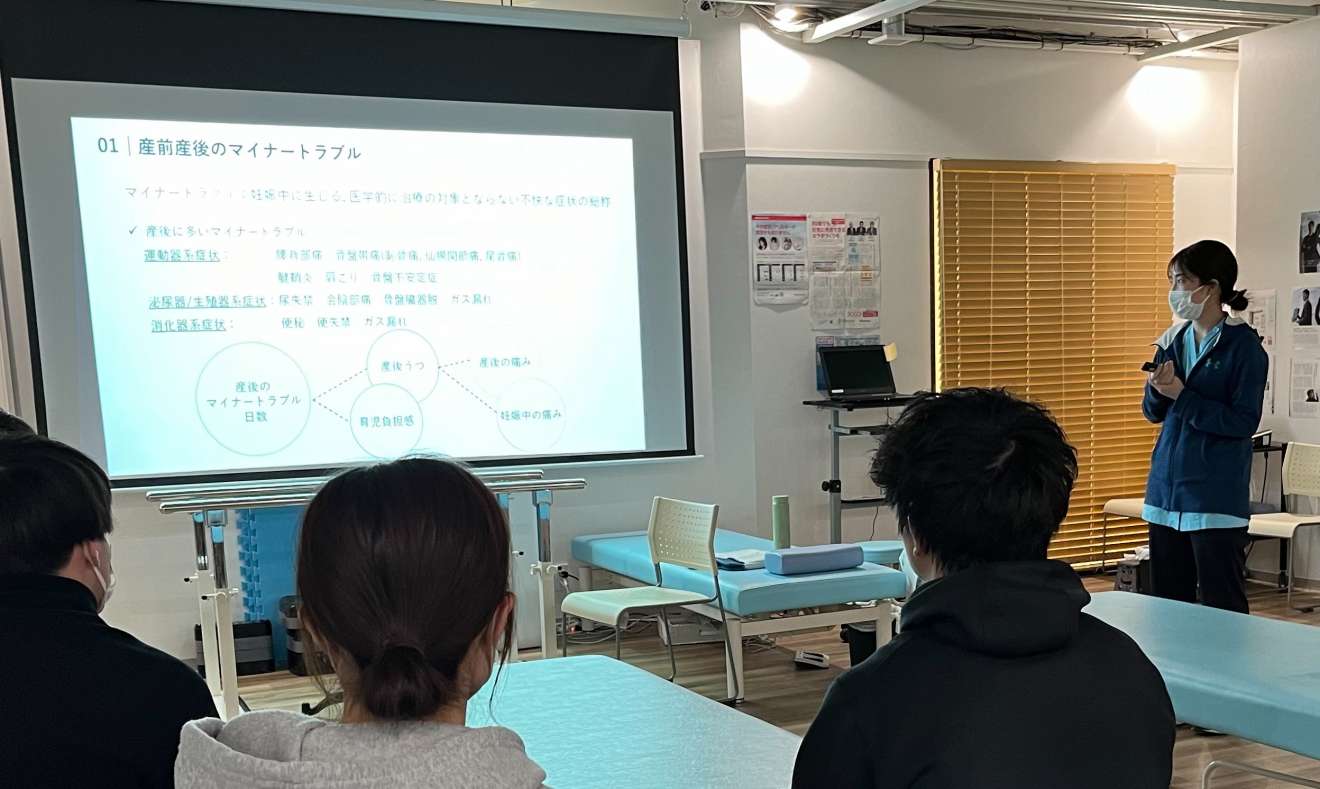 一般整形外科、外傷後(スポーツや転倒による骨折や捻挫)、術後(近隣病院と連携)、再生医療後(膝関節を 中心に実施)、ウィメンズ・メンズヘルス領域(産前・産後、尿もれなど)、幅広い整形外科疾患のリハビリ テーションを経験することができます。