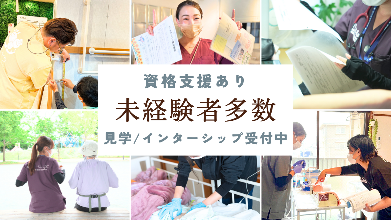 訪問看護未経験者多数!助け合って、スキルアップできる職場です! 資格支援や、外部機関や学校への講演会、地域活動への参加も承っています! まずは、見学だけでも、お気軽にお越しください!
