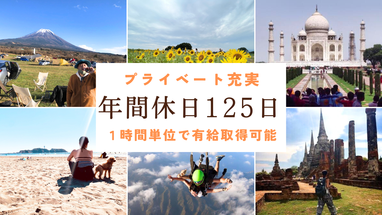 ⇒土日祝日、年末年始、夏季休暇で年間休日125日以上となっています。また、有給取得率も高く、時間単位で取得可能。上手に時間を有効活用しプライベートを充実させられます♪