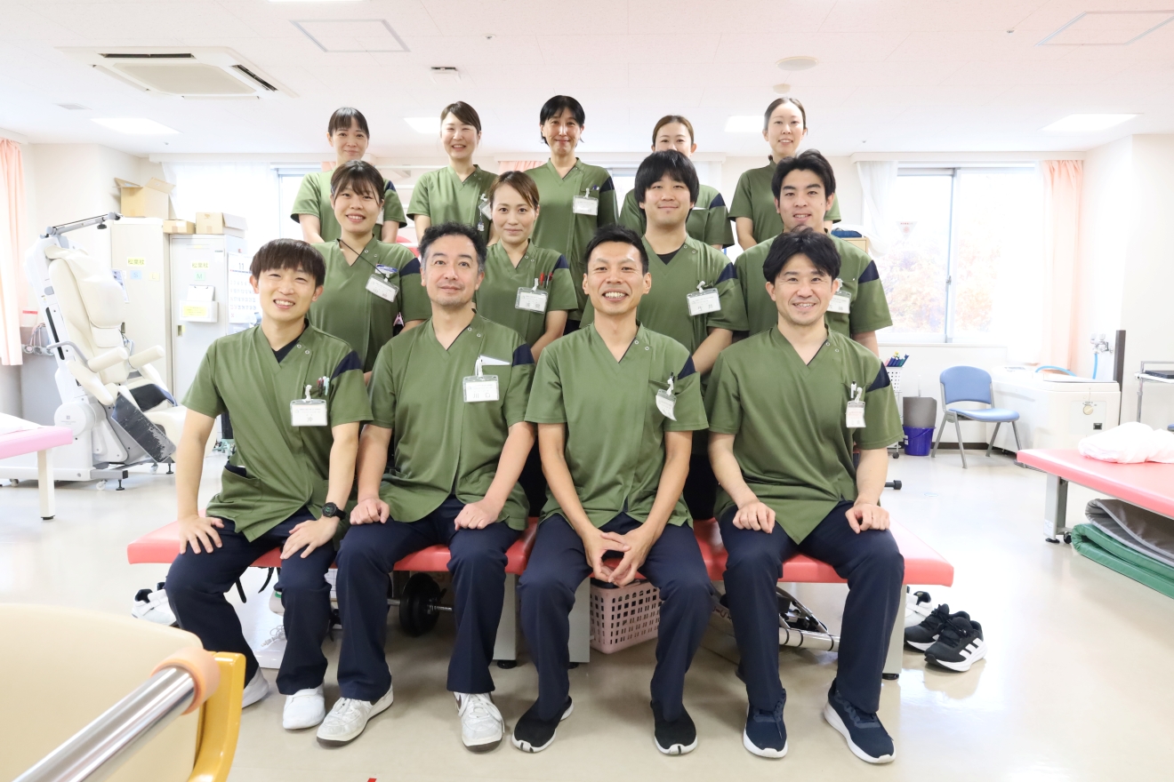 現在、理学療法士12名、作業療法士3名、言語聴覚士2名、計17名のスタッフが在籍しています。