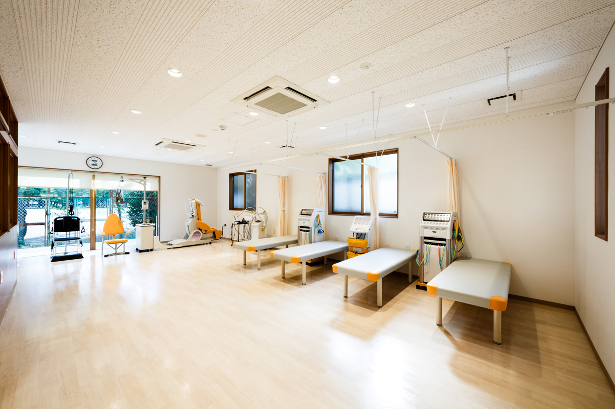 公園に面したリハビリテーション室は、自然の中にいるような、爽快感があります。