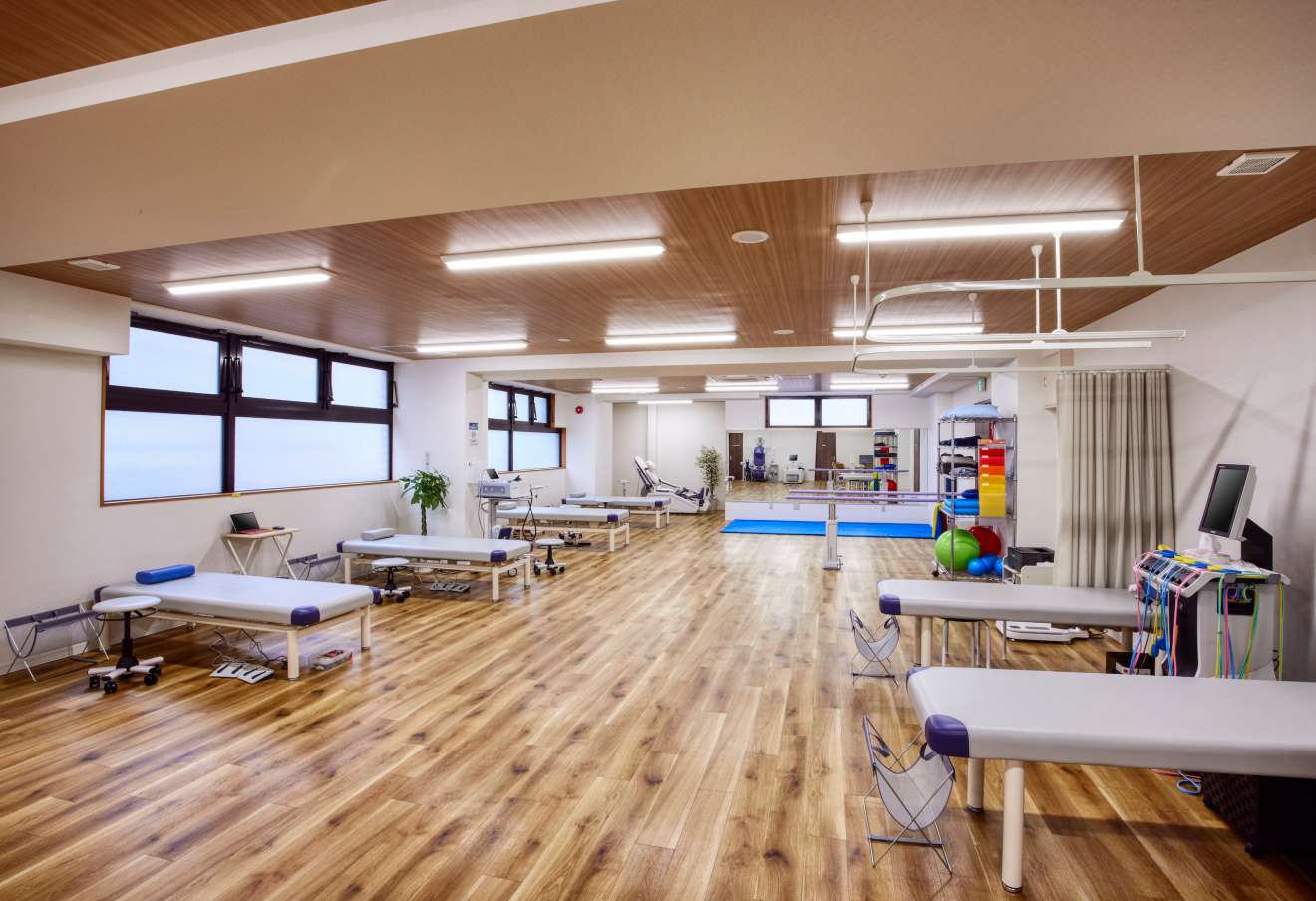 リハビリルームも150平米と広く、最新設備を用意しています!(2024年6月にリハビリ室を拡張オープン致しました。)
