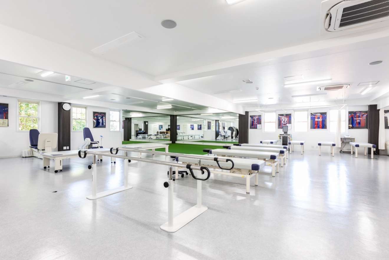 250㎡の広々したリハビリ室!トレーナー活動も可能!!リハビリ室にエコー4台!技術を可視化!!MRI・CT完備!!