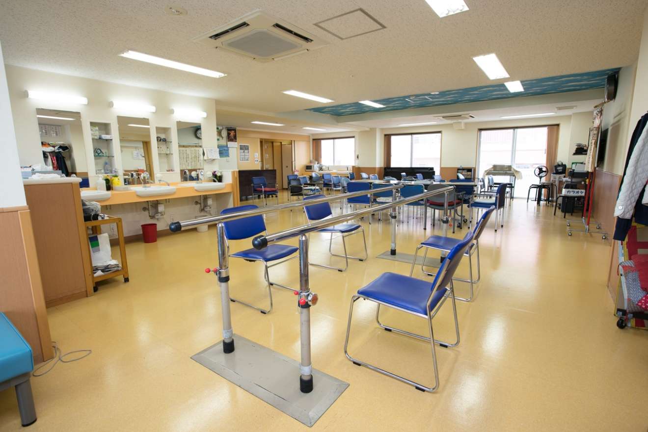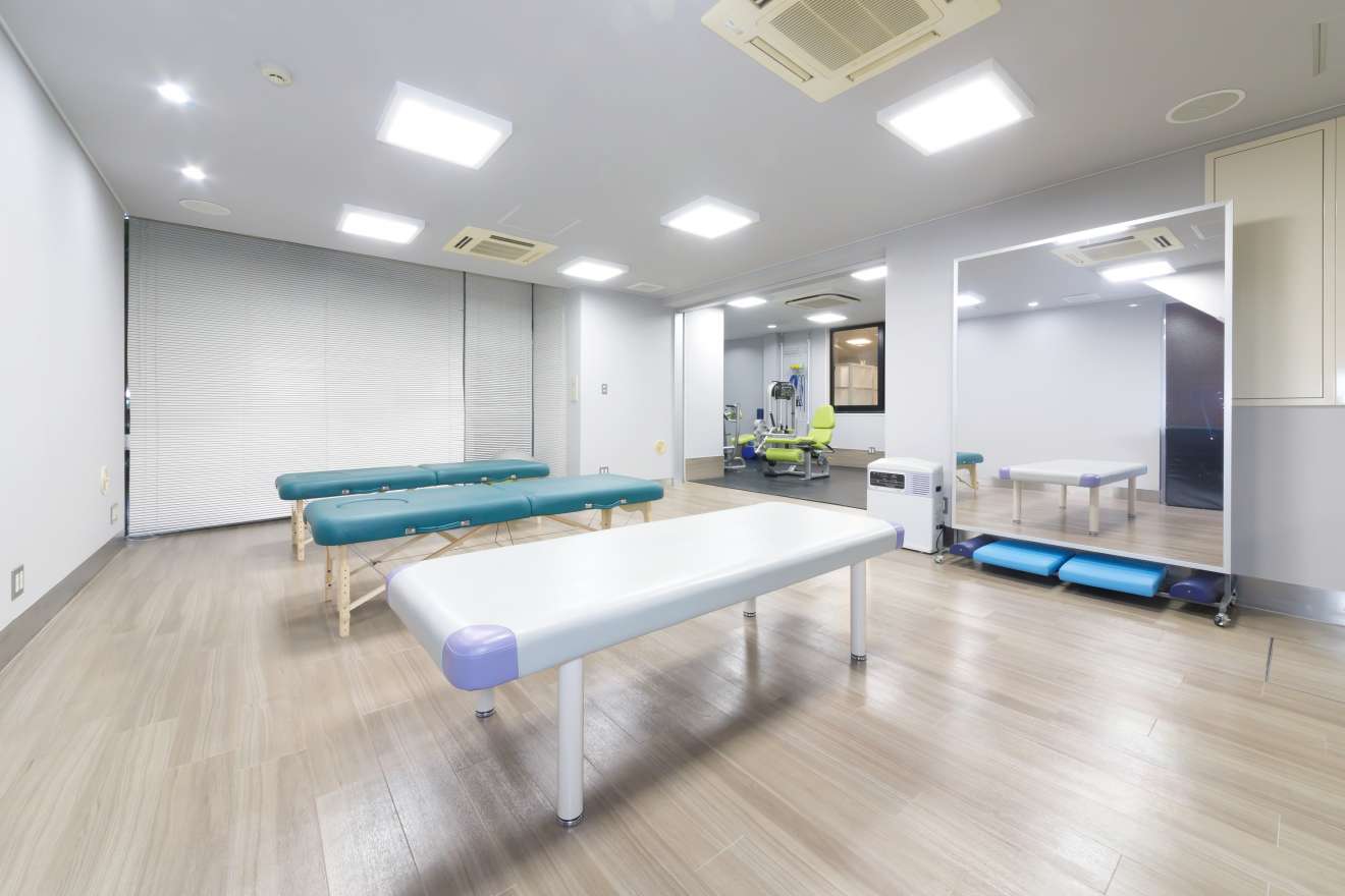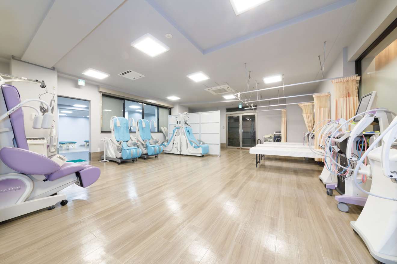 リハビリルームは100平米と広く、最新設備を用意しています。