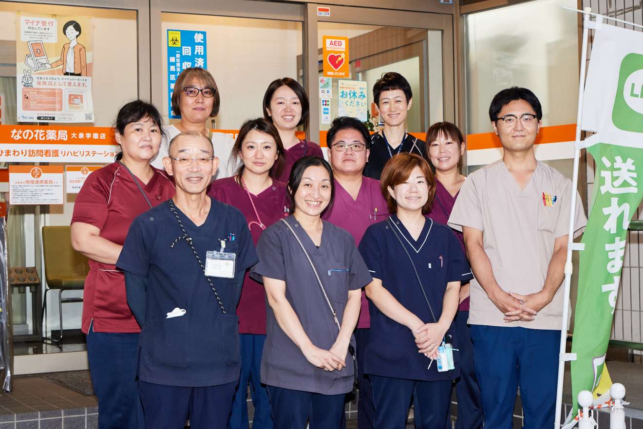 訪問看護ステーションには看護師・理学療法士(PT)・作業療法士(OT)が在籍、さらには隣接する薬局では薬剤師はもちろん栄養士も在籍しており地域に頼られる訪問看護ステーションを目指しております。