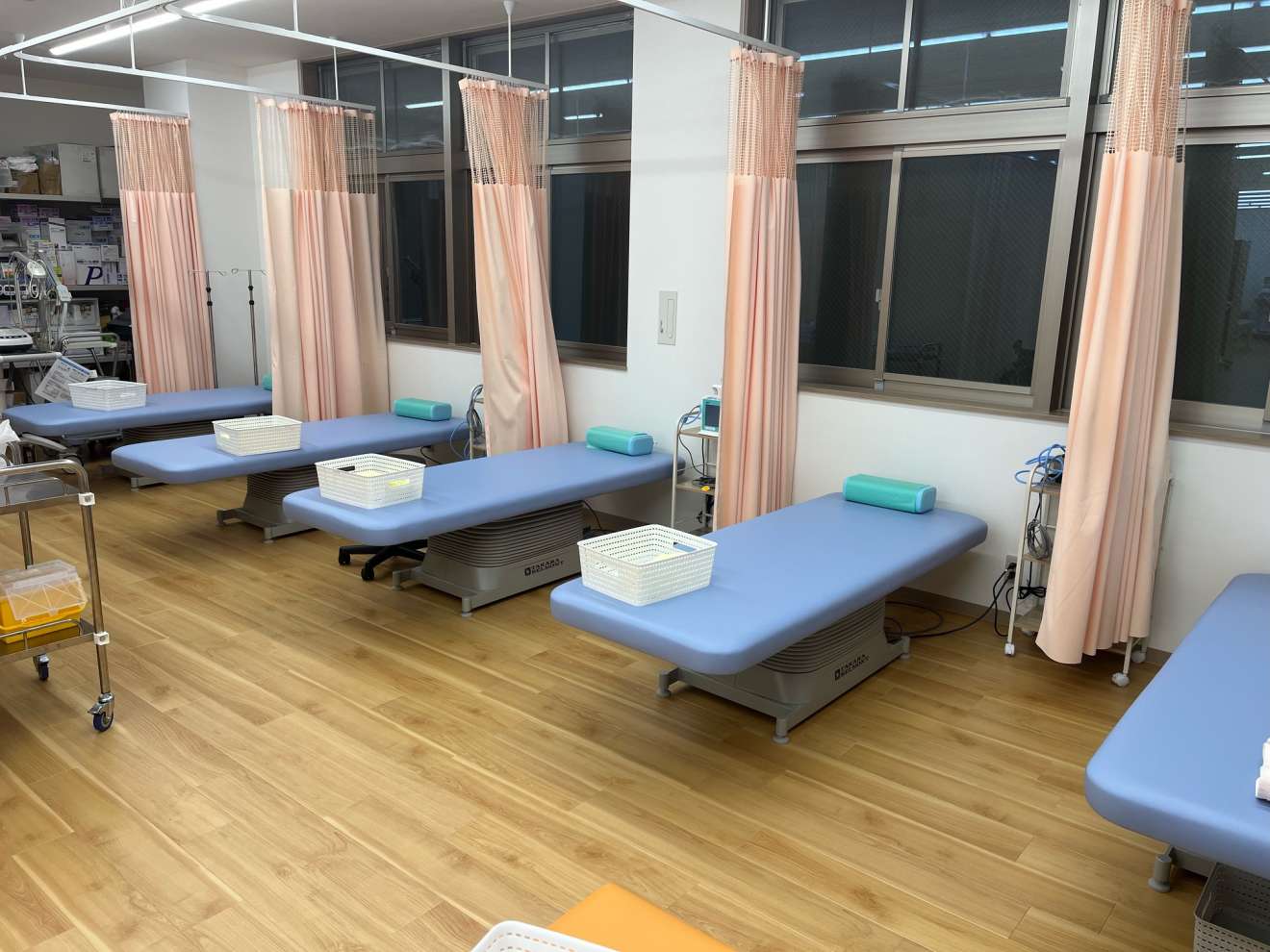 痛み・しびれ治療にはリハビリは必須と考えています。リハビリ室は約170㎡の広さもありセラピストの先生には存分に力を発揮していただける環境です。