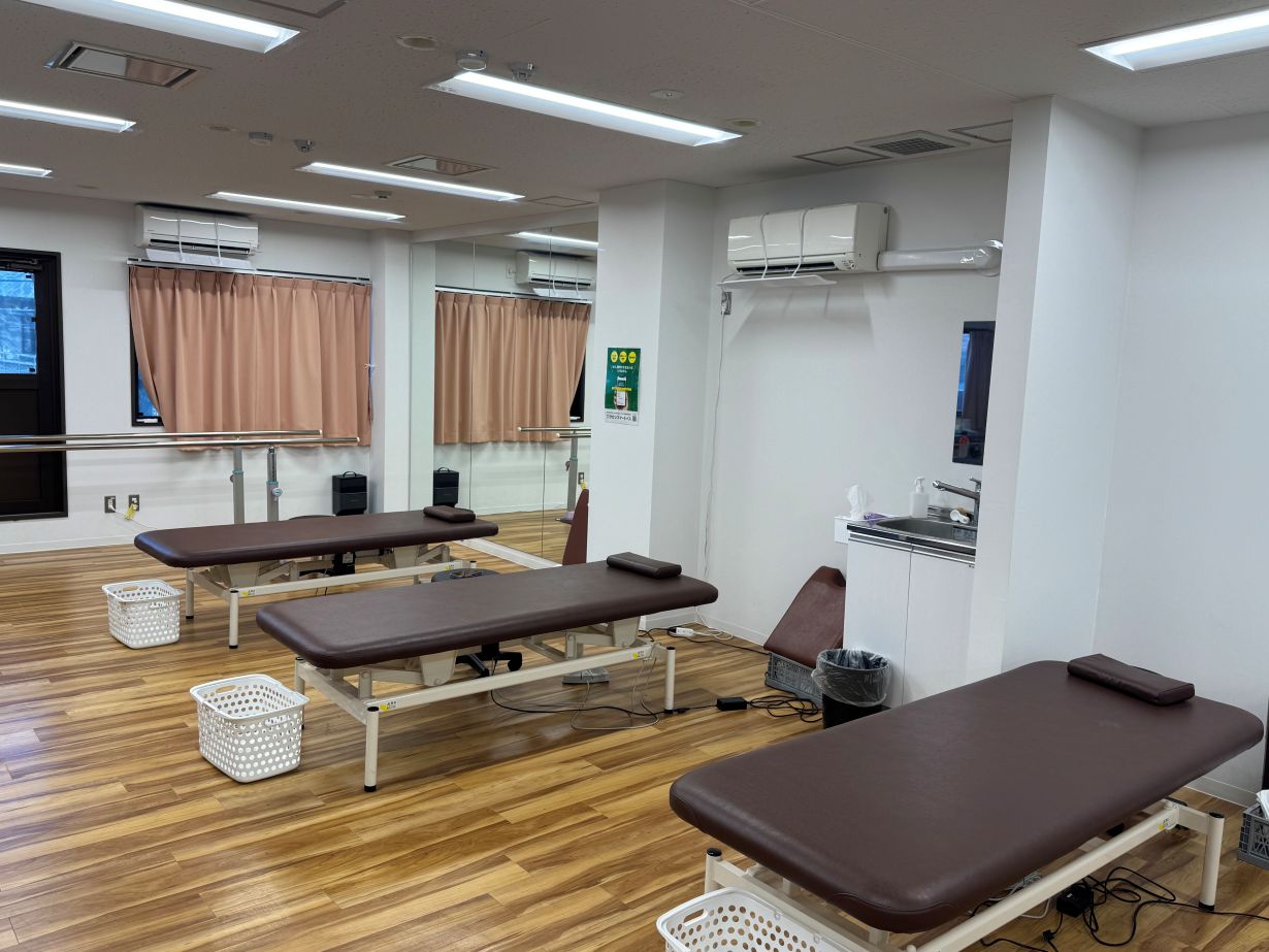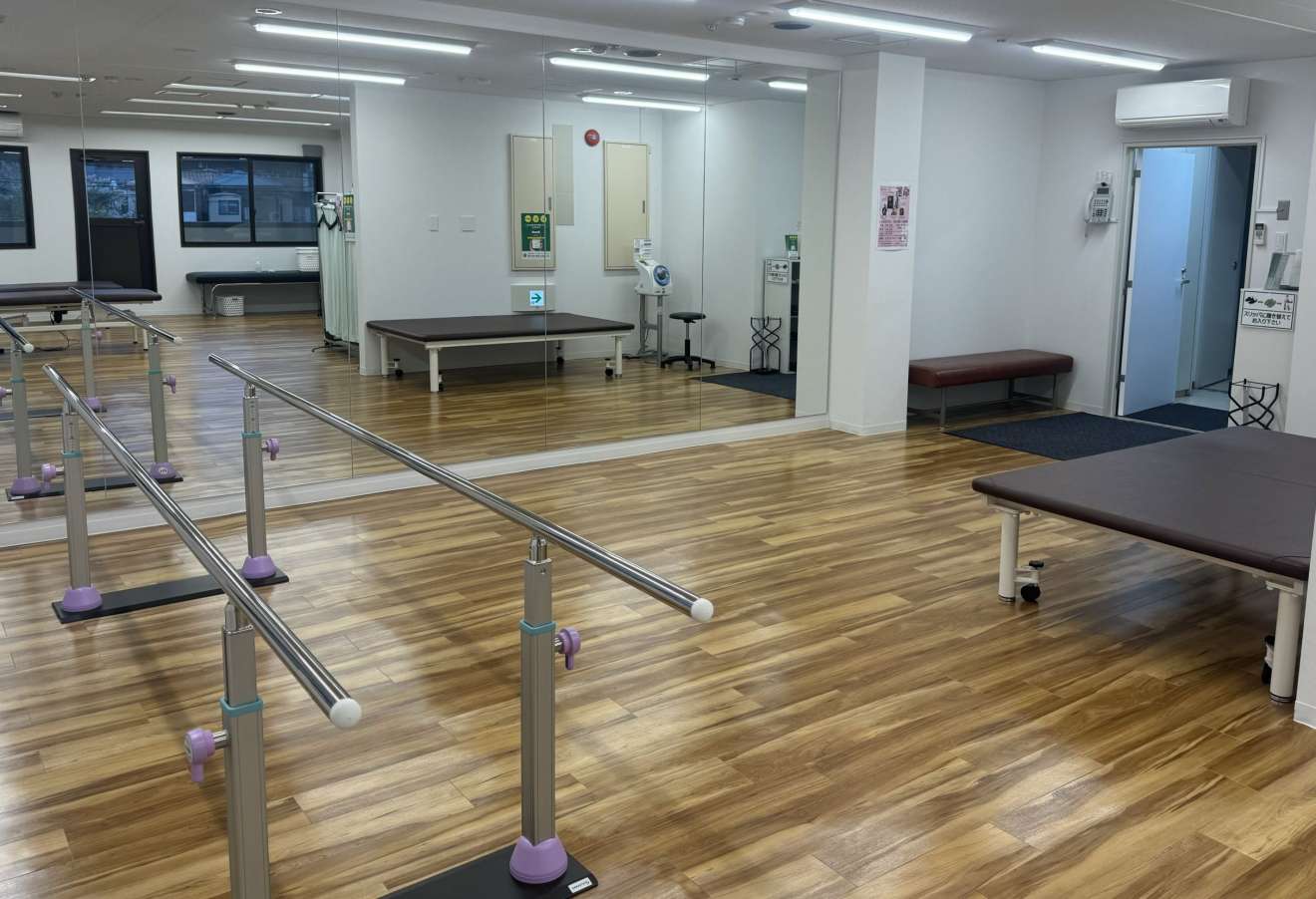 ・壁一面の大きな鏡があり圧迫感がなく、姿勢や動作が見やすくなっております。