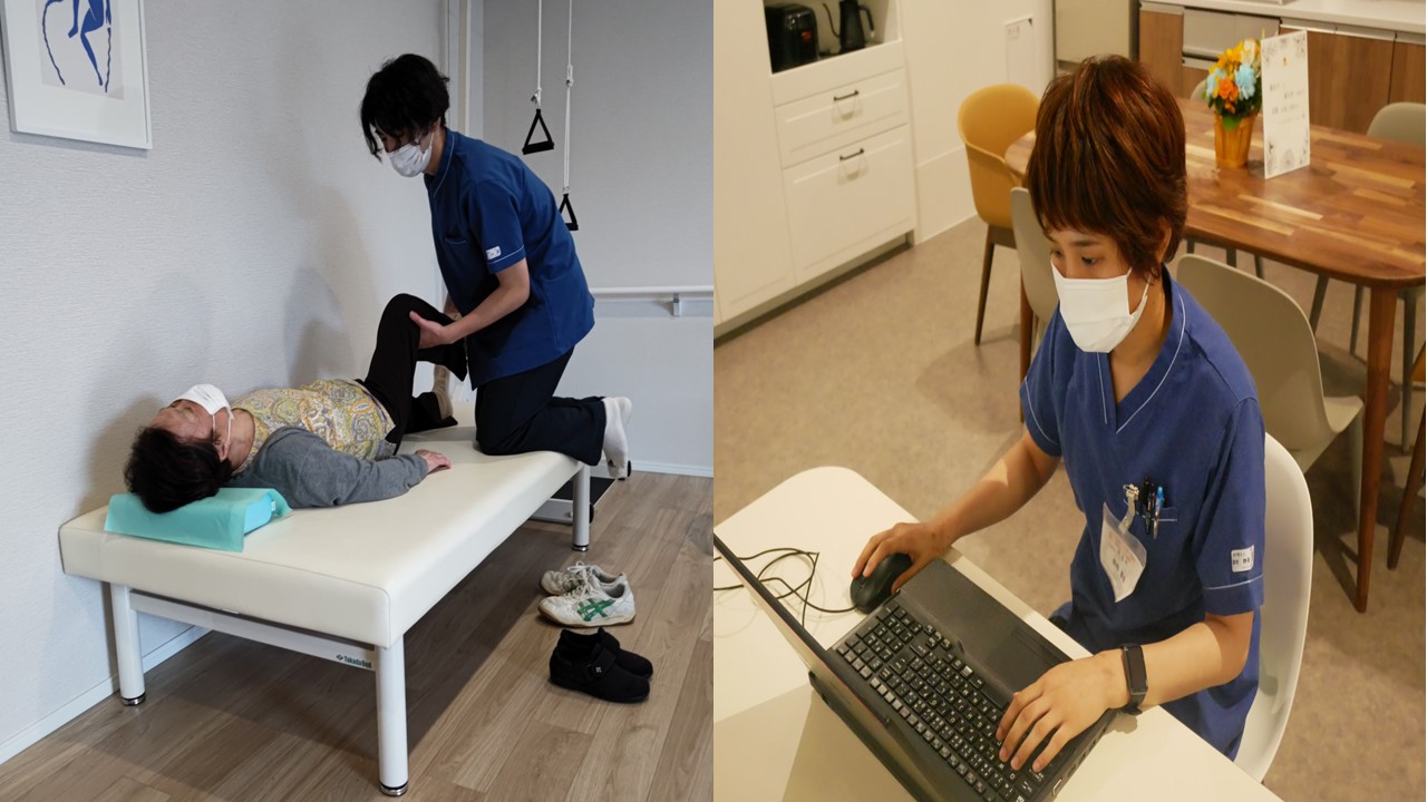 業務マニュアルや電子カルテ操作マニュアルを整備し、新入職者もスムーズに業務に従事できるようにしています。 入院では主に脳血管疾患、運動器疾患、廃用症候群の患者様を対象としています。在宅復帰後は外来、通所リハ、訪問リハを通して在宅生活の援助を行っています。
