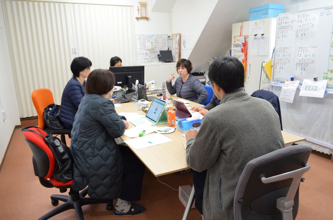 毎週水曜日は訪問看護塾=勉強会の日です。「まだわからないこと」「経験していないこと」「他のスタッフはどうやって説明しているの?」を学び合います。スタッフが順番で教えて欲しいことを出し合い、教え合う事を大切にしています。