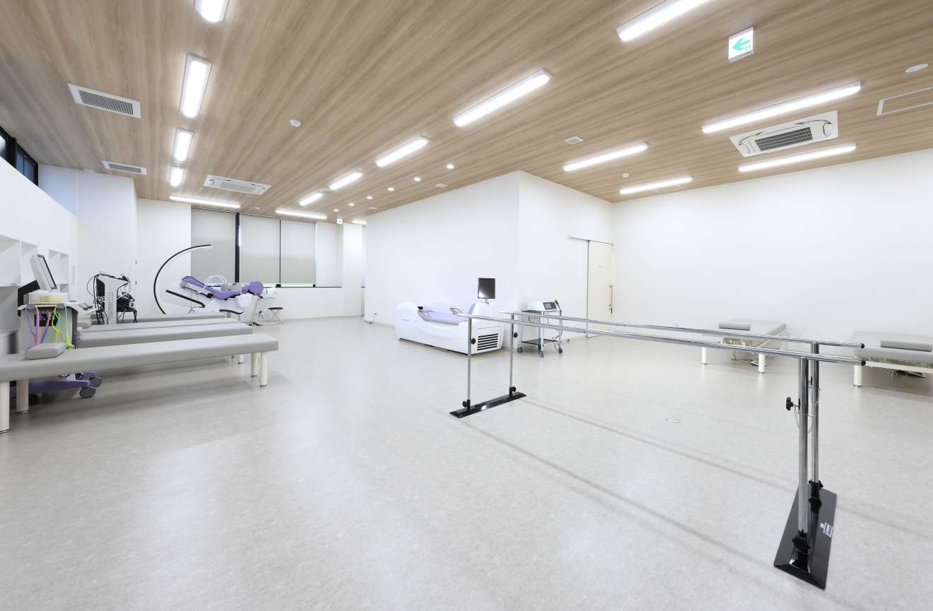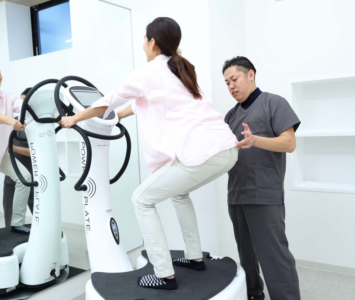 現在、常勤3名(男性2名、女性1名)、90㎡超のリハビリ室、電動昇降ベッド完備、パワープレートや拡散型圧力波治療器も揃え、自由に治療法を選択頂けます。