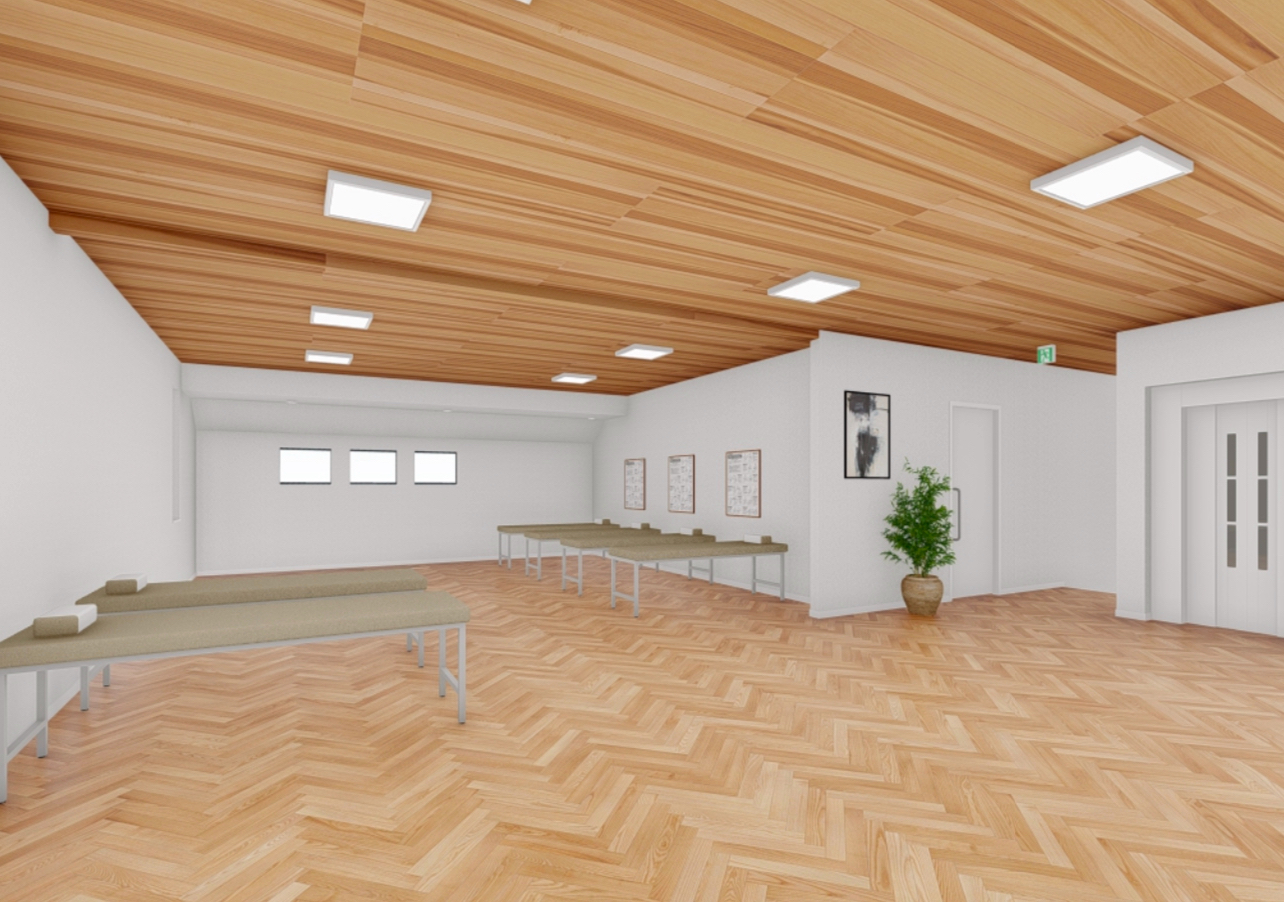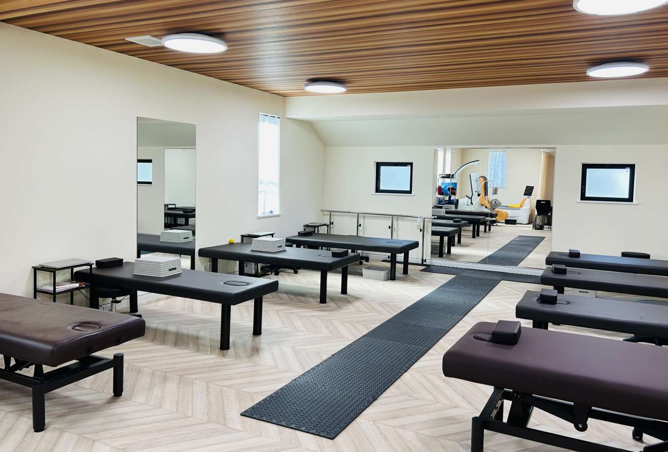 ●2階ワンフロア、約100平米の広々とした開放感のあるリハビリ室になっています。