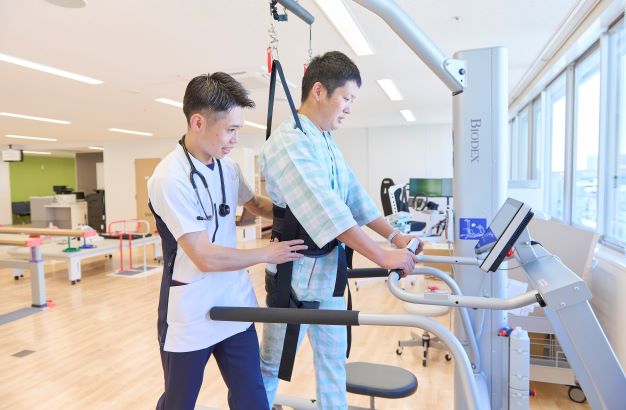 発症・術後早期からリハビリを開始し、急性期病院から回復期、在宅リハまで切れ目ないリハビリテーションを展開しております。