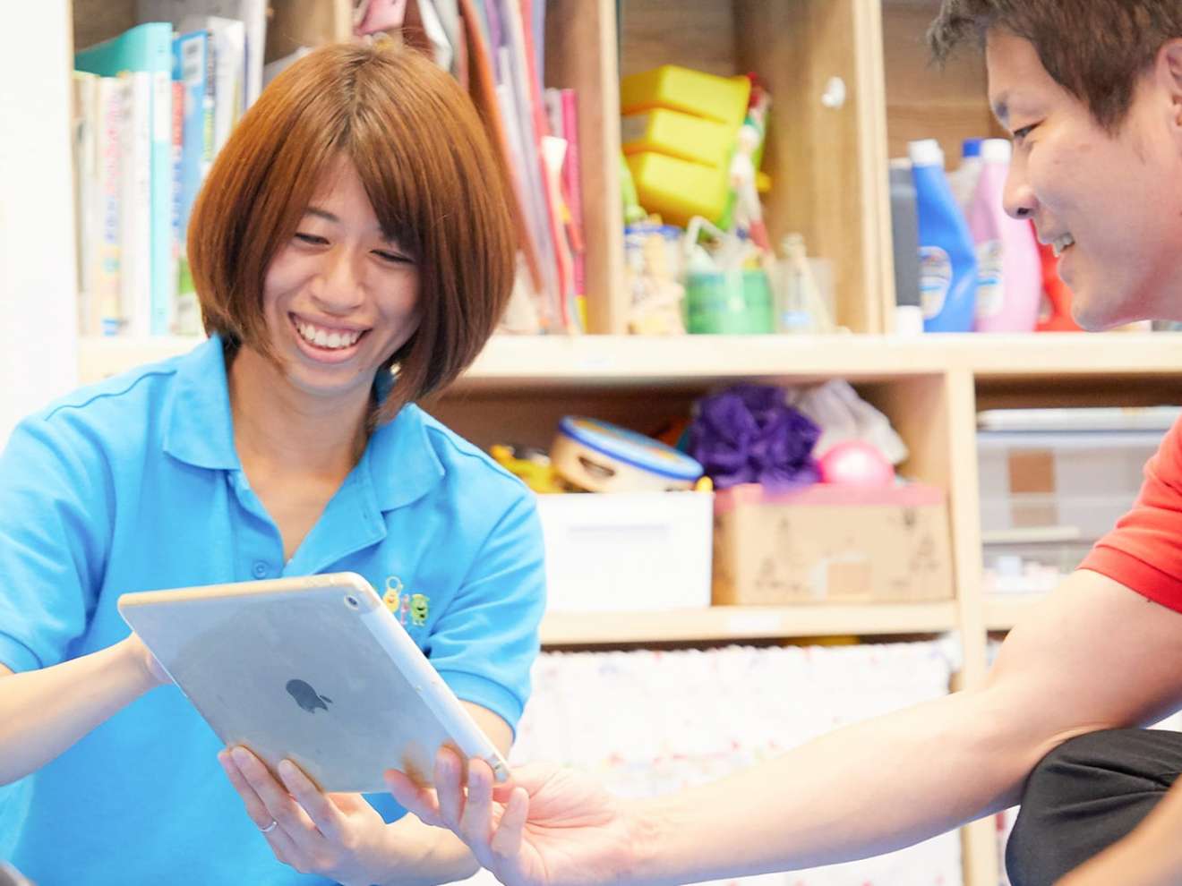 事業所長・先輩職員から1日の動きのレクチャーを受けながら利用児を担当します。 チームで対応するため一員として積極的に関わることができます。