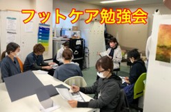 【外部勉強会実施】 利用者様の訪問の中で、足のトラブルや歩行に関する悩みも多いため、フットケアスペシャリストの方に勉強会をお願いしました。現場で役立つ知識を、ステーション内でも学んでいます。