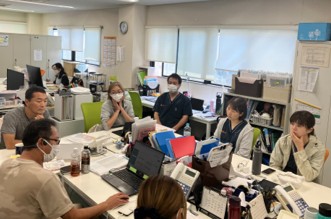 【ステーション内カンファレンス実施】 看護師・リハビリスタッフが協働し、利用者様の事例検討や振り返り、今後の課題についてカンファレンスを実施しています。ご利用者様への支援をより良いものとするため、定期的に取り組んでおります。