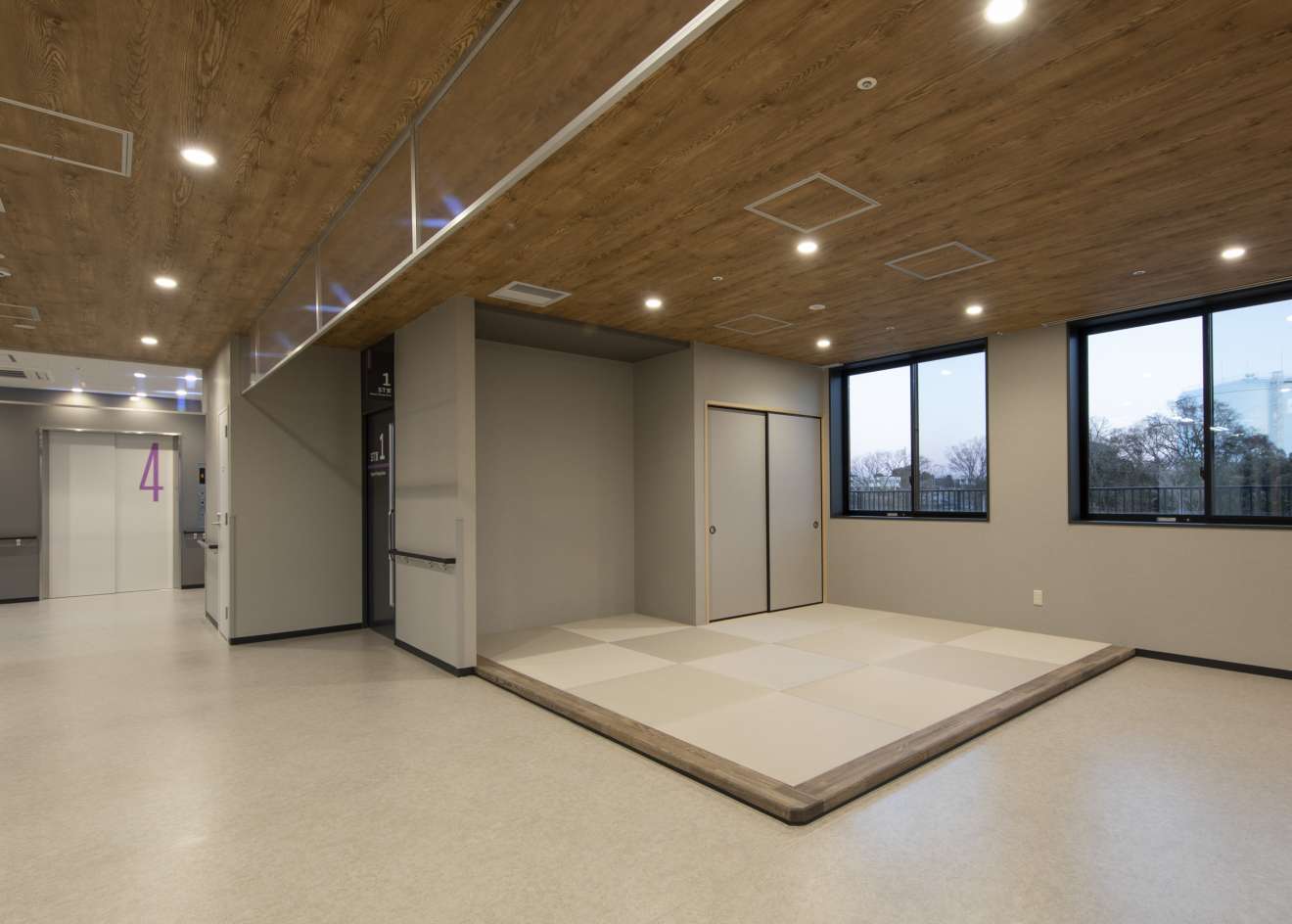 567㎡のリハビリ空間に、言語聴覚士室・和室・外来リハビリ室を含めた充実の設備を完備しています。