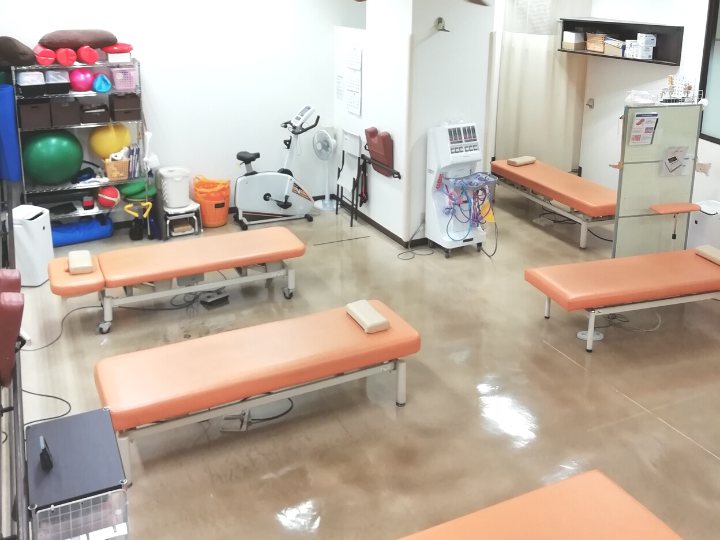 <リハビリ>電動ベッド6台完備です。徒手療法や運動療法が中心です。オーストラリア留学経験のあるPT、ピラティス有資格者、マリガンコンセプト認定セラピストなど在籍。